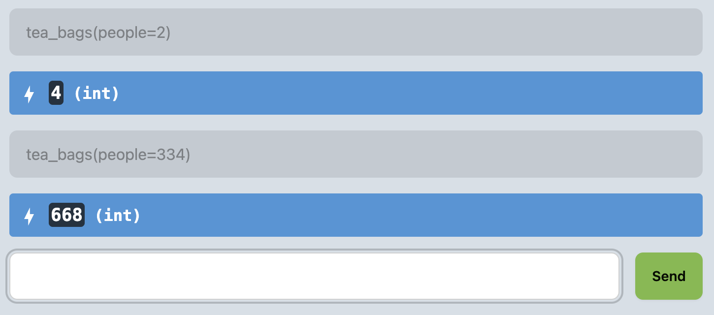 peopleparameter of type:int- the number of guests attending the tea party