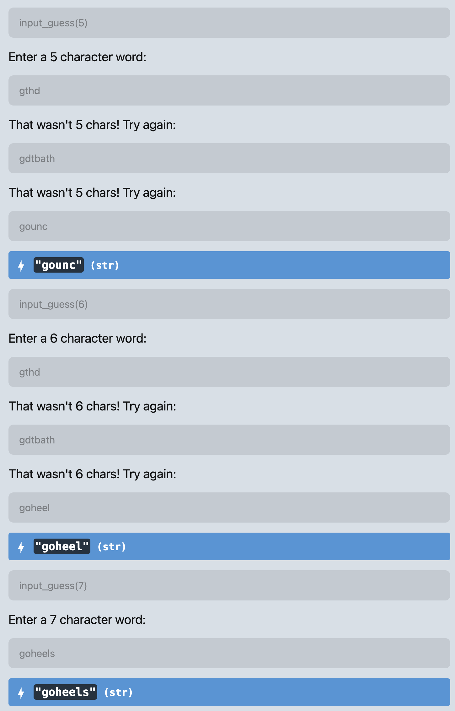 input_guessof the same length of each word- If the guess is a different length, you get to try making another guess until a guess is the correct length